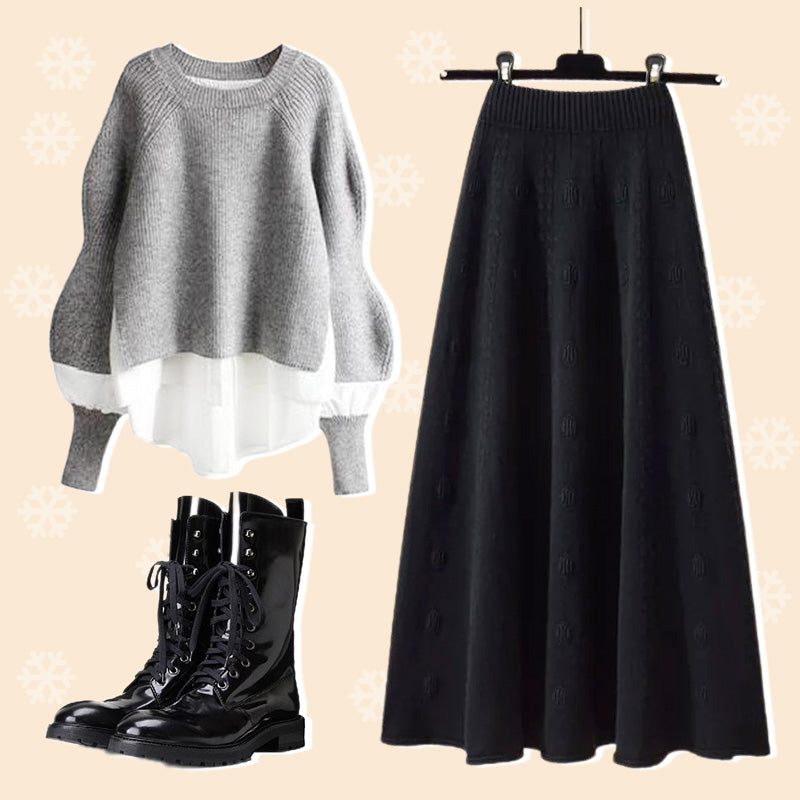 Deze set, bestaande uit een gezellige trui en een stijlvolle rok, is ontworpen om tegemoet te komen aan de moderne vrouw die zowel mode als functionaliteit waardeert.