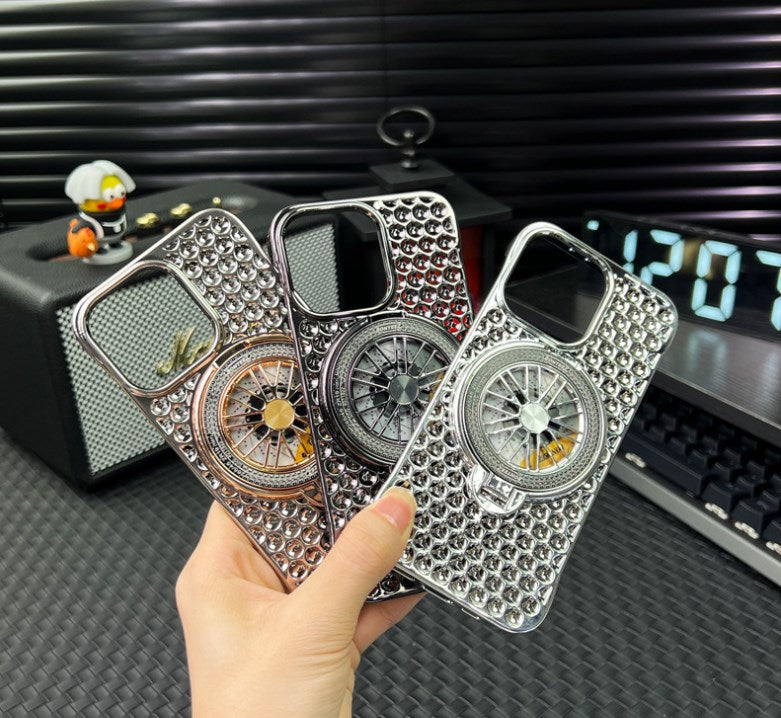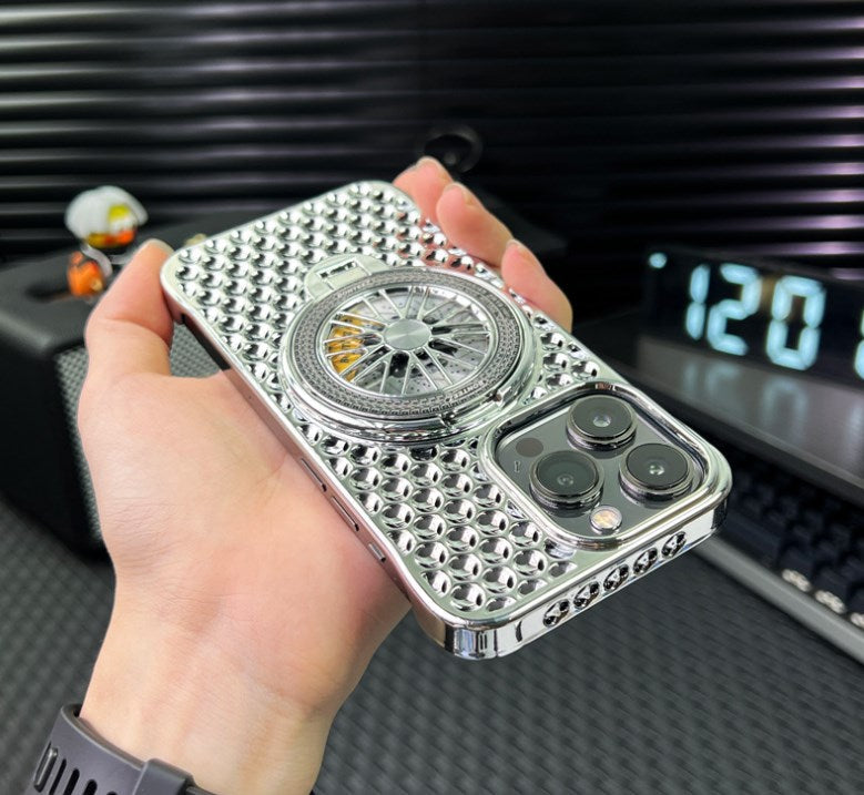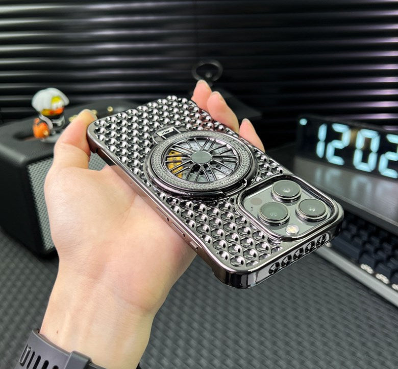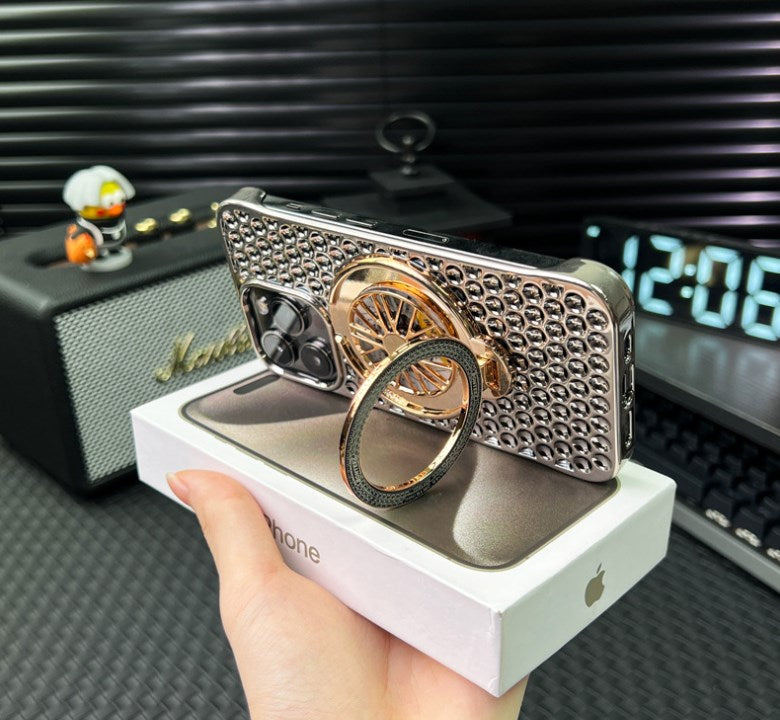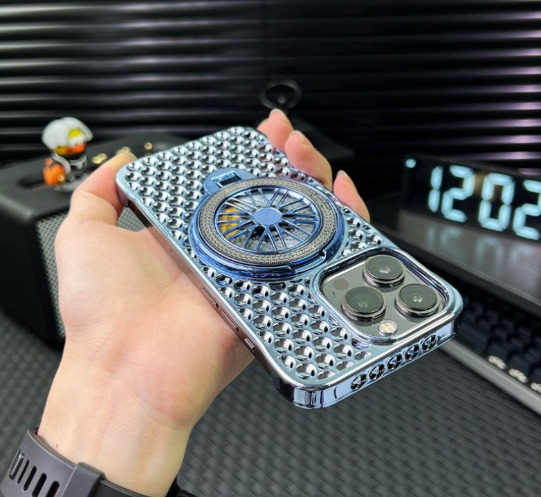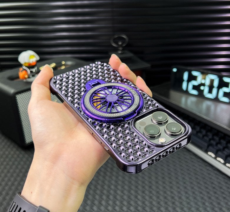 Telefoonhoesje compatibel met iPhone 12/13/14/15 Pro Max en andere modellen - Honingraat warmteafvoer, magnetisch ontwerp, gyroscoopstandaard, gegalvaniseerde anti-valbescherming.