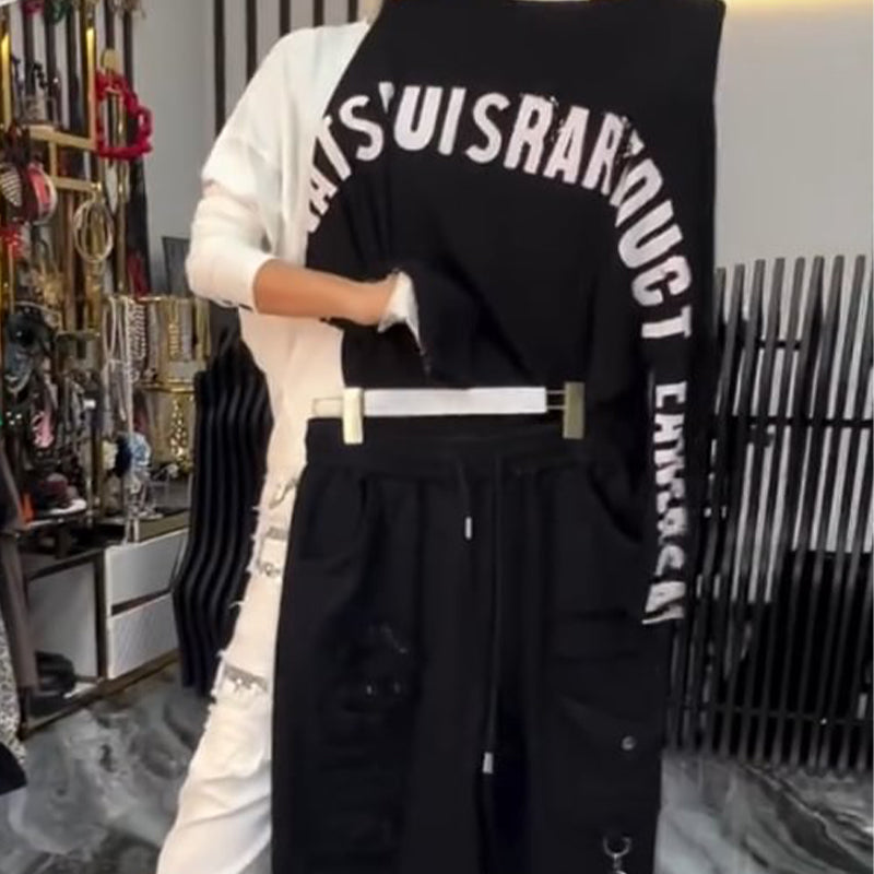 FASHIONABLE EN TRENDY - Deze set combineert een losse pasvorm met een trendy letterprint en biedt een stijlvolle en toch casual look, waardoor het een ideale outfit is voor verschillende gelegenheden.