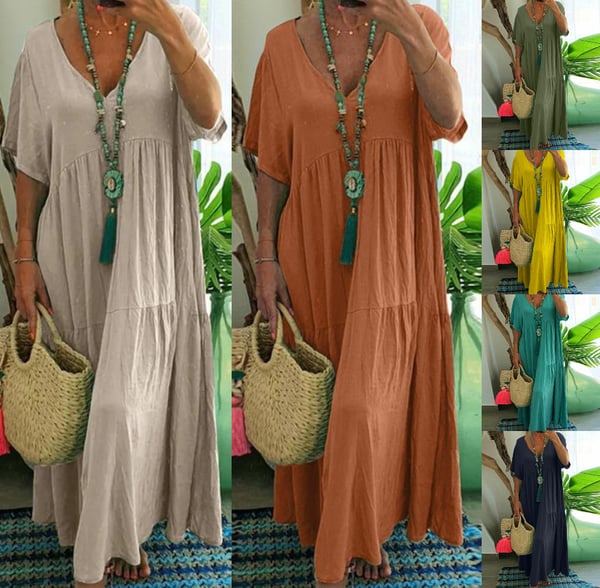 🌺Hot Sale 50% UIT⏳ Casual lange jurk met korte mouwen voor dames