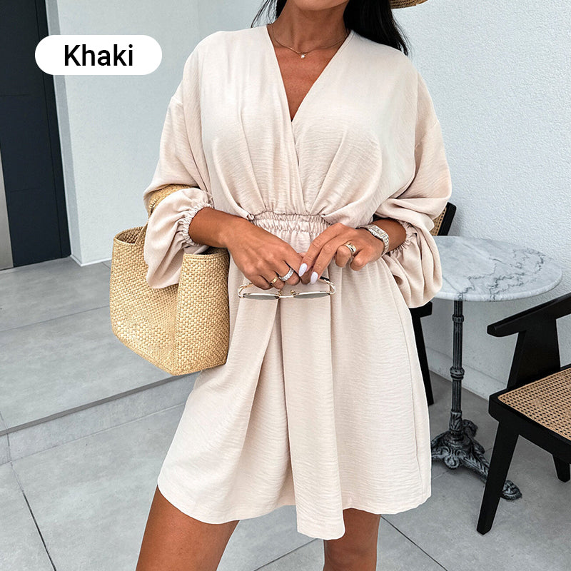 Pakket bevat: 1 * Charmante Lange Mouwen V-hals Taille Jurk