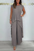 🌺Zomerspecial - 50% korting Laney Geplooide Korte Mouw Onregelmatige Midi Top en Elastische Taille Broek met Wijde Pijpen Set