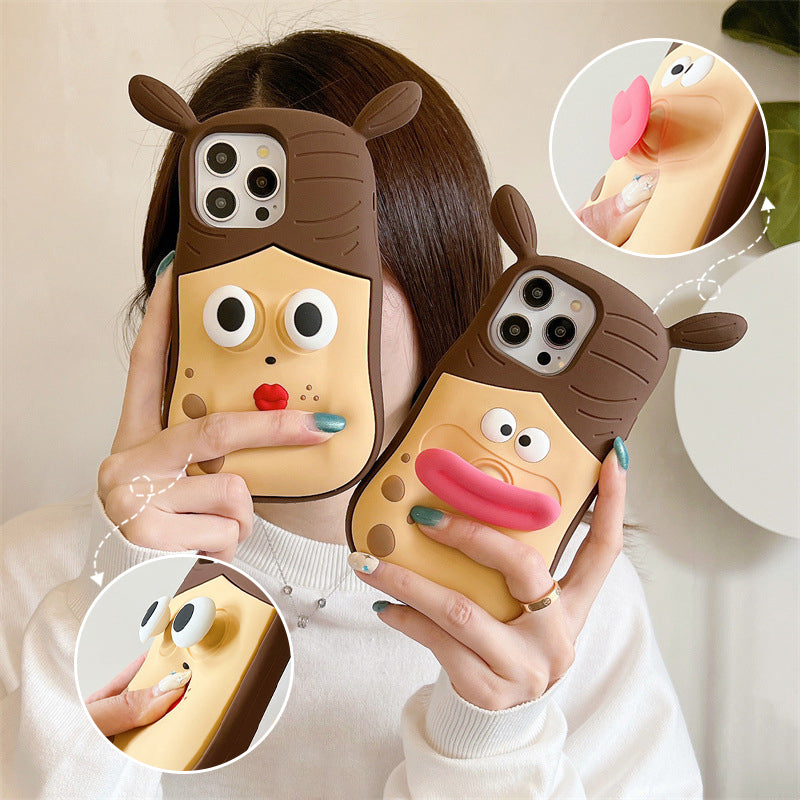 CREATIEF EN AMUSEREND ONTWERP - Het hoogtepunt van dit hoesje is het creatieve ontwerp met een gevlochten meisje met grappige gezichtsuitdrukkingen zoals een worstvormige mond en starende ogen. Dit grillige ontwerp voegt een vleugje humor en persoonlijkheid toe aan je iPhone, waardoor het opvalt in de menigte en een glimlach tovert aan iedereen die het ziet.