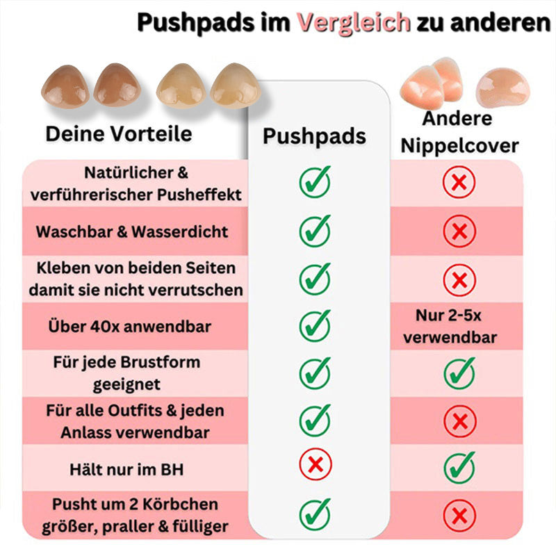 Zeg vaarwel tegen zichtbare BH-bandjes en geniet van een gladde, naadloze look met onze dubbelzijdige plakkerige Push-Up Nippelafdekkingen.