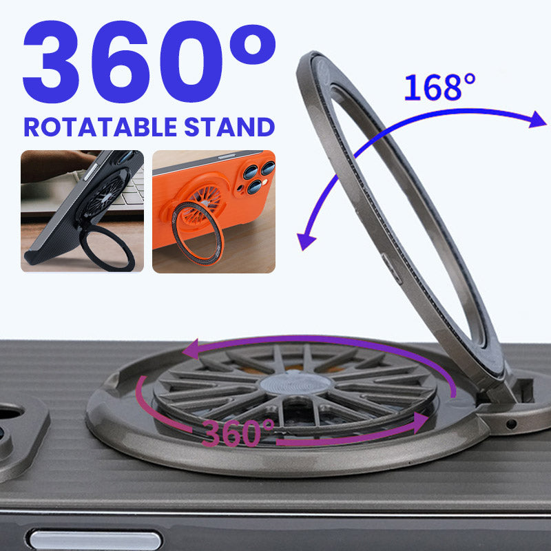 360° ROTATABLE STAND: Met de geïntegreerde standaard kun je je telefoon 360 graden draaien, zodat je handsfree kunt kijken en optimaal kunt positioneren voor verschillende activiteiten, zoals videogesprekken, streamen en gamen.