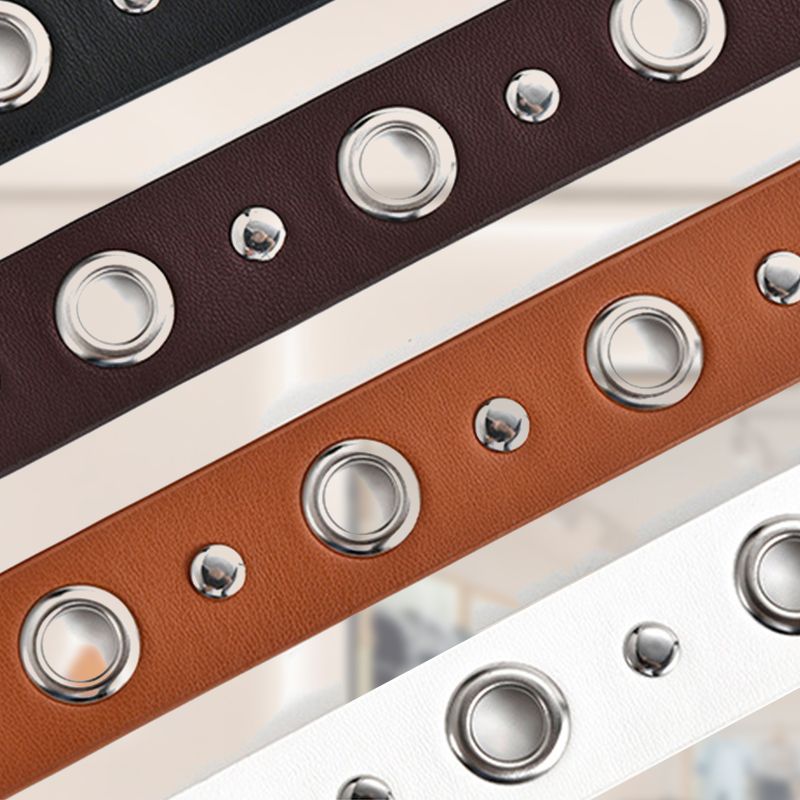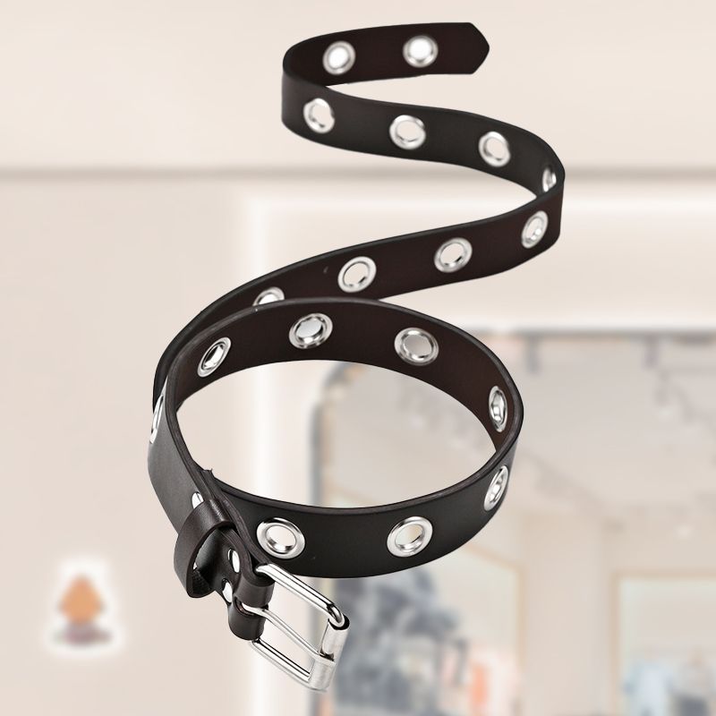 GROMMETS STUDDED BELT: The continuous metal eyelets make this unisex leather belt more convenient to adjust for different waist sizes. The silver-tone hardware will easily give you a punk rock look during your casual life.
