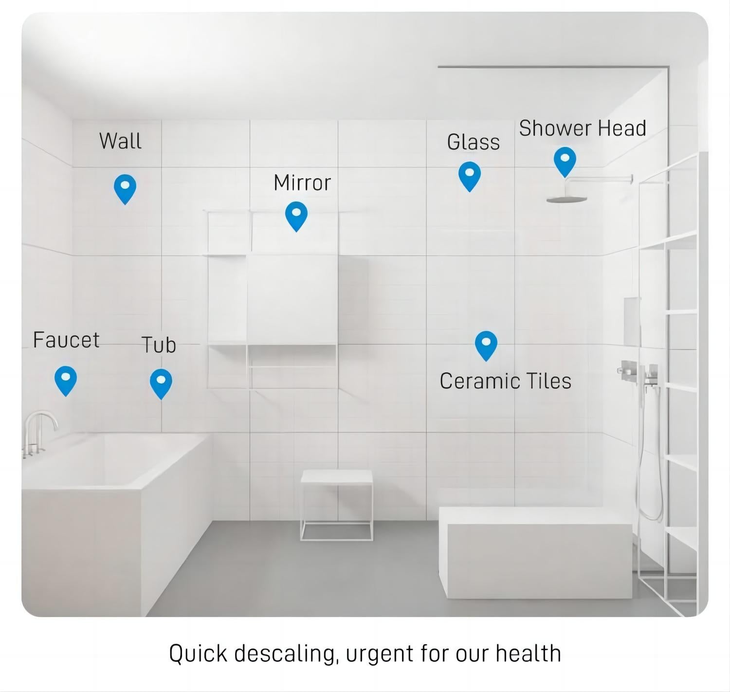 Geschikt voor: Tegels, Wasbakken, Douches, Badkuipen en alle badkameroppervlakken