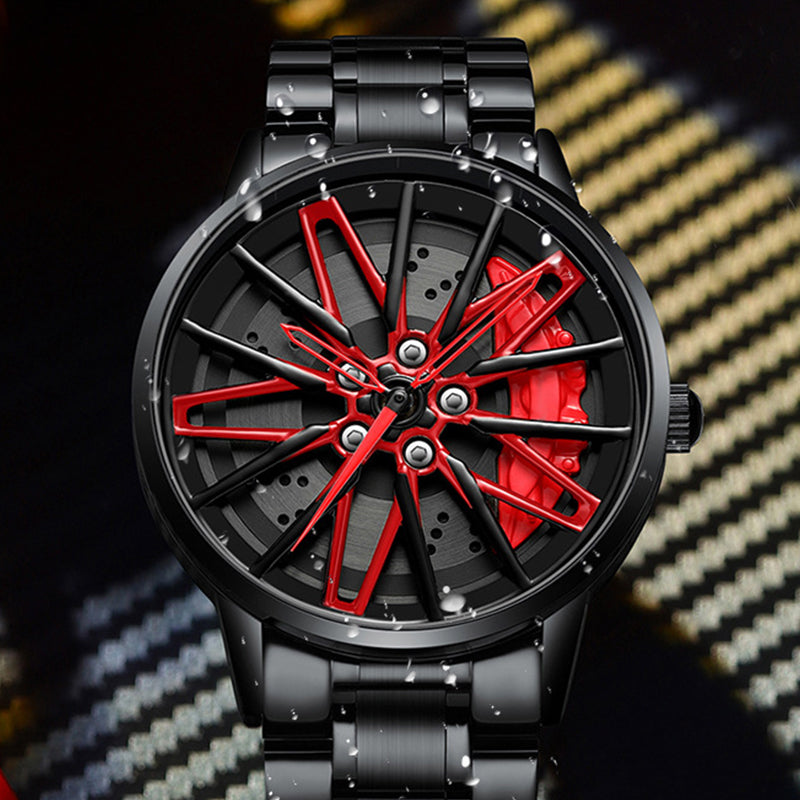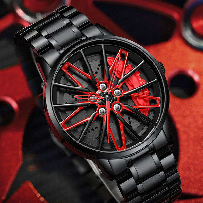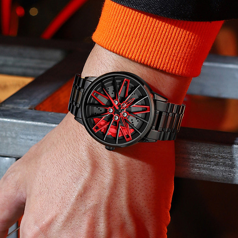 3D SKELETONTWERP: pronk met de ingewikkelde details van het draaiende skeletmechanisme, geïnspireerd op een gestroomlijnd autowiel voor een moderne, edgy look.
