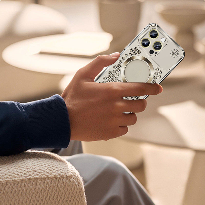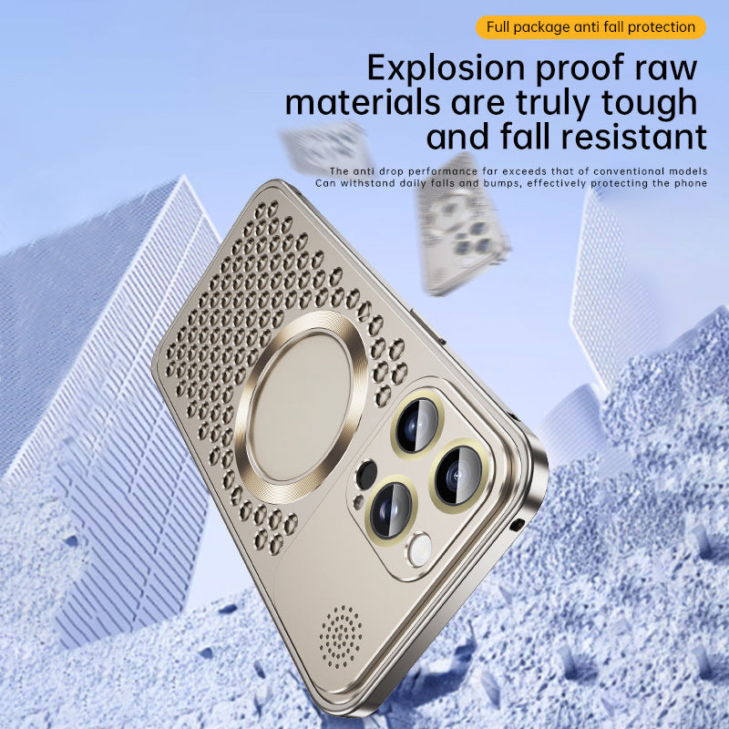 Ervaar ultieme telefoonbescherming met de Metal Drop-proof Heat Dissipation Aromatherapy Phone Case. Dit innovatieve hoesje combineert duurzaamheid, warmteafvoer en een ingebouwde aromatherapiefunctie voor een stijlvol en functioneel telefoonaccessoire.