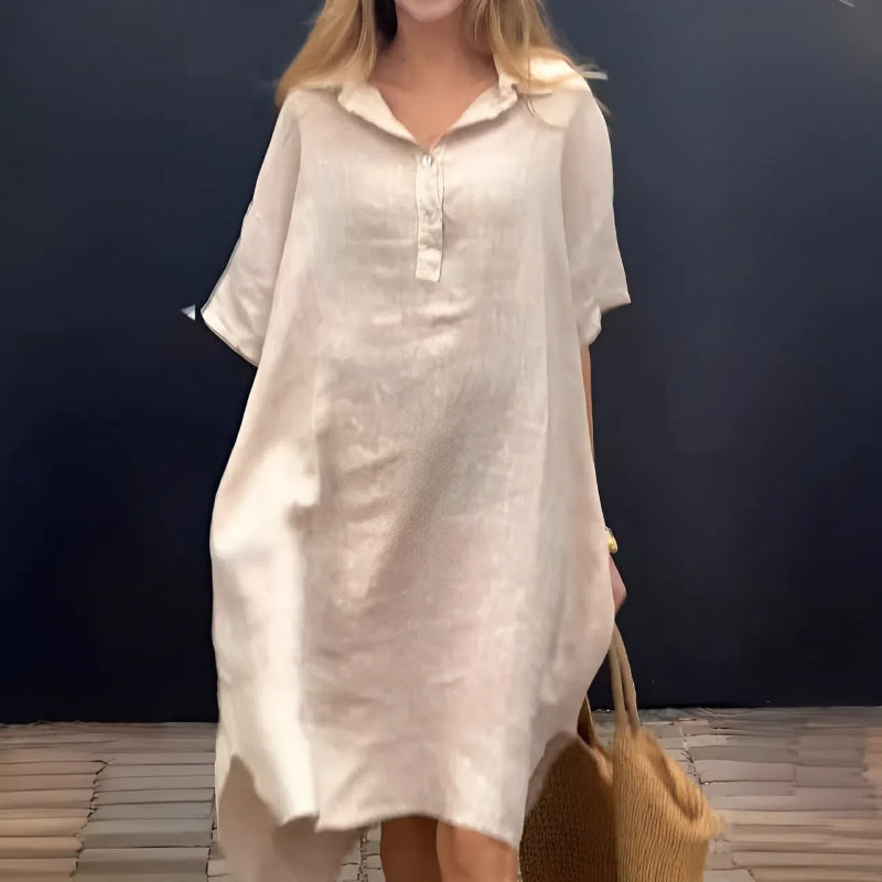 COMFORTABELE OVERSIZED PASVORM - Ontworpen voor ultiem comfort, biedt deze jurk een ontspannen silhouet dat elegant over het lichaam valt, voor bewegingsgemak en een relaxte vibe.