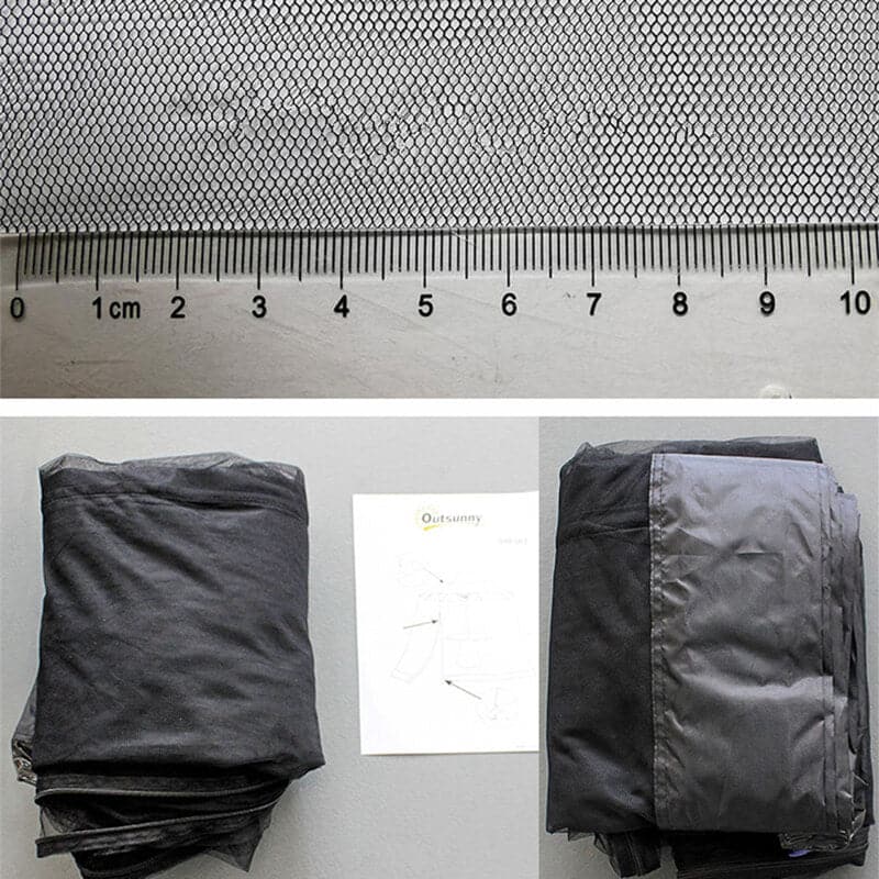 Het gaas kan gemakkelijk over de parasols worden geplaatst. Vul de buizen langs de basis met water om het scherm op zijn plaats te houden. De verstelbare top cinch sluiting zorgt voor een flexibele pasvorm. Als je het gaas niet gebruikt, kun je het opvouwen tot een compact formaat zodat je het gemakkelijk kunt opbergen. Het weegt slechts 2,4 kg.