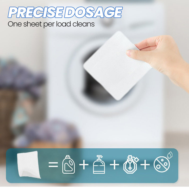 PRECISE DOSERING - Eén blad per wasbeurt reinigt, verzacht en verwijdert geuren. Gemakkelijk en efficiënt, zonder rommel of overtollig wasmiddel.