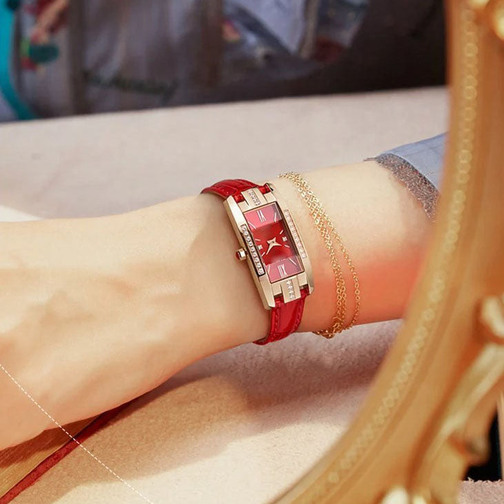 Smaragdgroen, edelrood en elegant rood – 3 kleuren van stijlvolle vierkante horloges die glans en accenten toevoegen aan uw look. Dit wordt uw nieuwe favoriete accessoire!