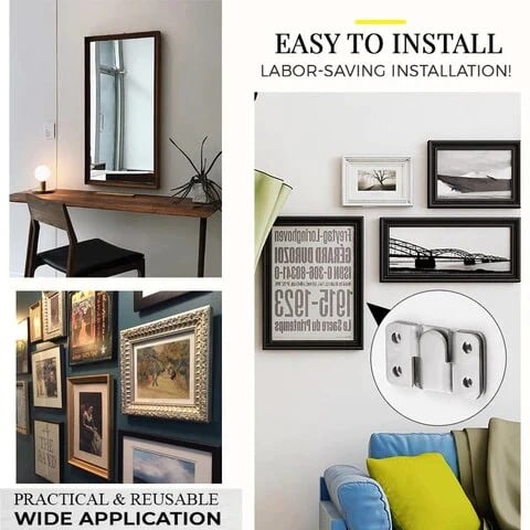 Toepassing: In elkaar grijpende beugels zijn ideaal voor het bevestigen van fotolijsten, kunstwerken, tentoonstellingsschilderijen, posters, hoofdeinden, houten kasten, klokken, spiegels of als meubelverbinders. Breng elegantie in je huis en kantoor