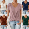 🎉Speciale prijs🎉👚Casual t-shirt met korte mouwen en elegante v-hals plooien