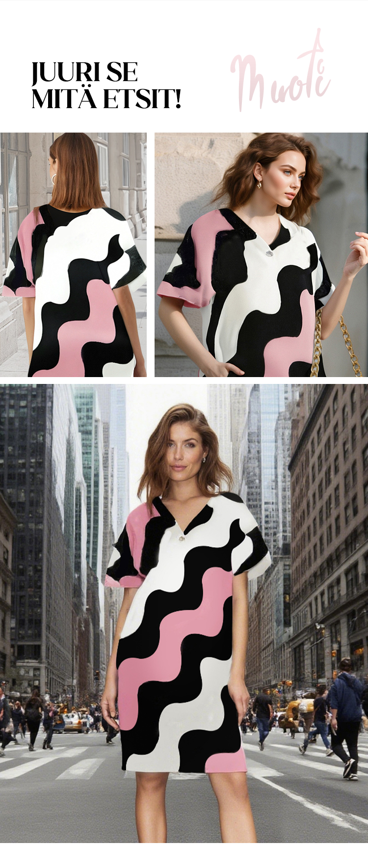 OPVALLEND EN MODERN GOLFPATROON – Maak een statement met het opvallende golfpatroon in levendige kleuren. De unieke print combineert hedendaagse flair met artistieke expressie en creëert een speciale look voor elke gelegenheid. Ideaal voor modeliefhebbers die hun persoonlijkheid willen laten zien.