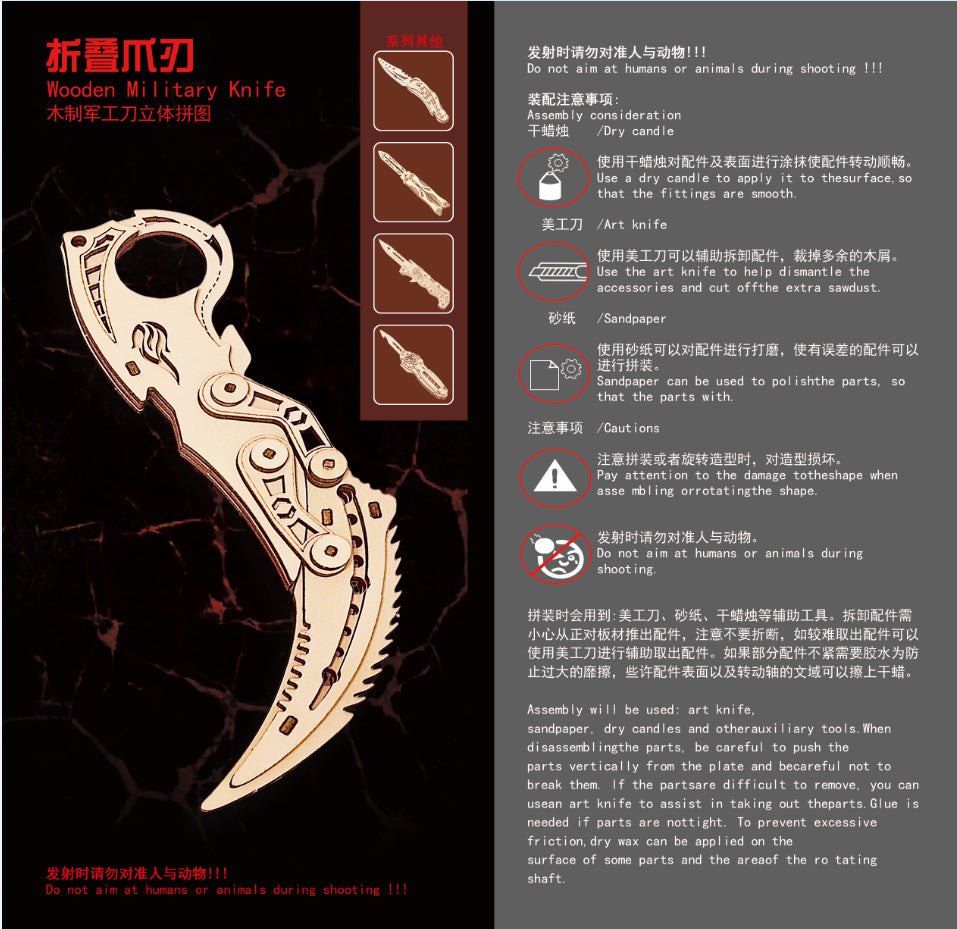 Pakket Inbegrepen: 1* Houten Militair Mes Model Puzzel